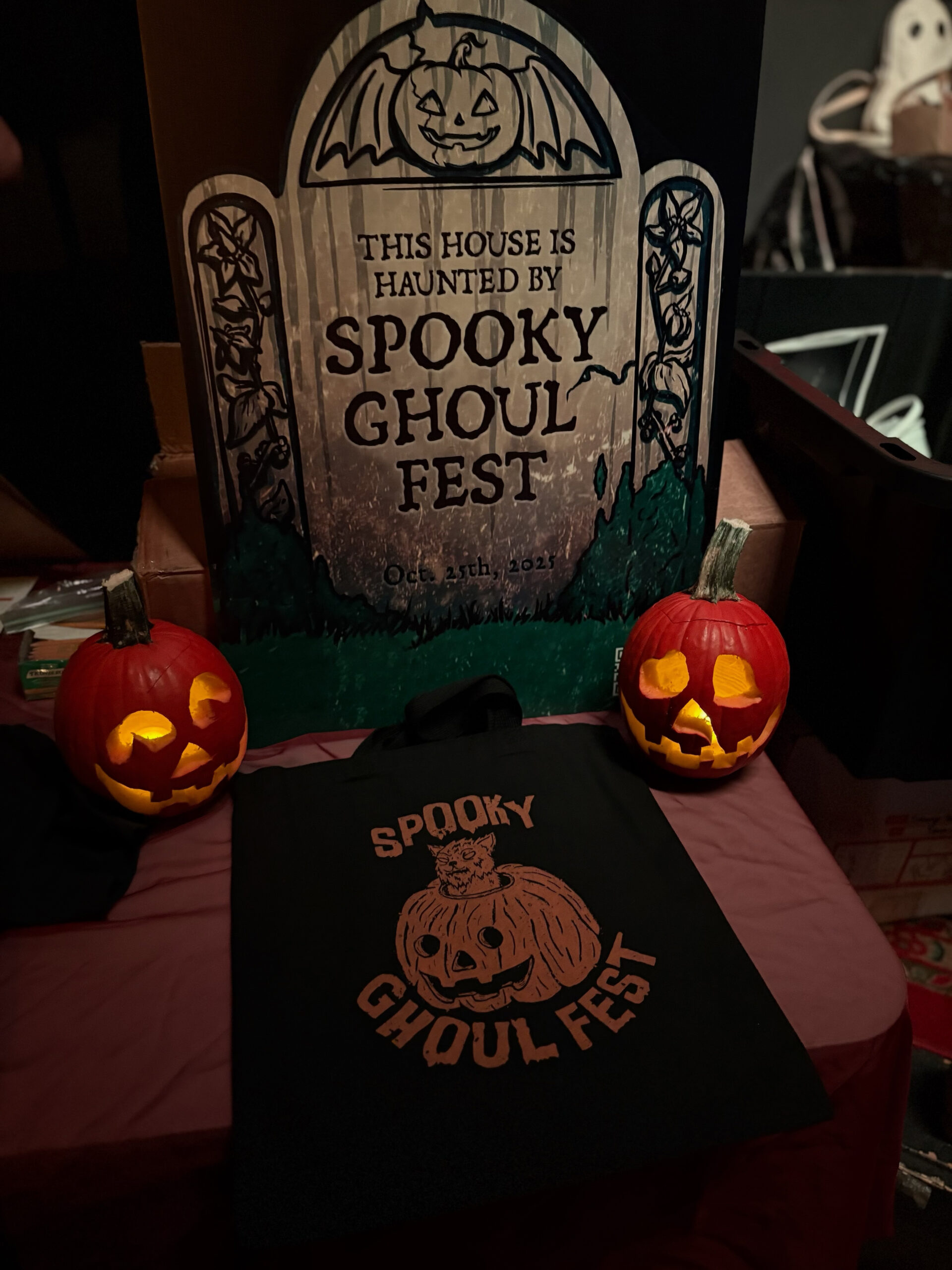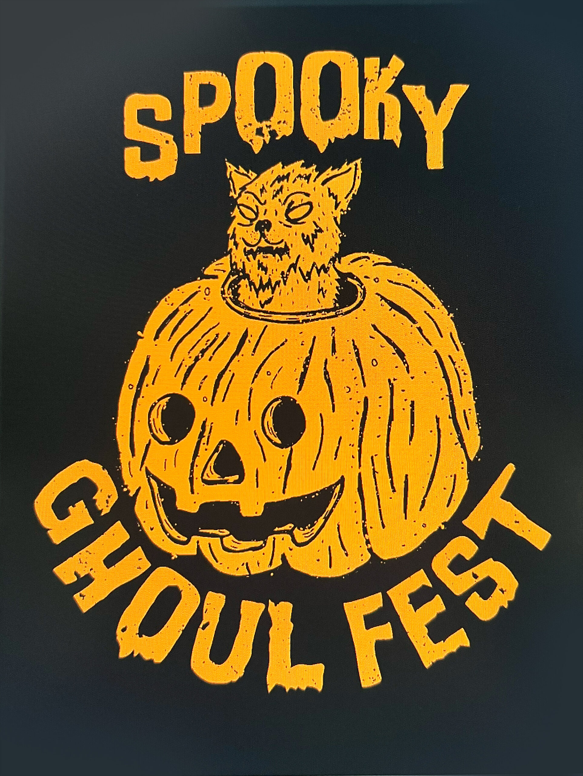 A vision so perfect you’d die if you saw it in real life. Keel over and turn into a skeleton immediately. Designed by Nathaniel Covington, this cat peeking out of a pumpkin is a truly wonderful way to show your Spooky Ghoul pride.
